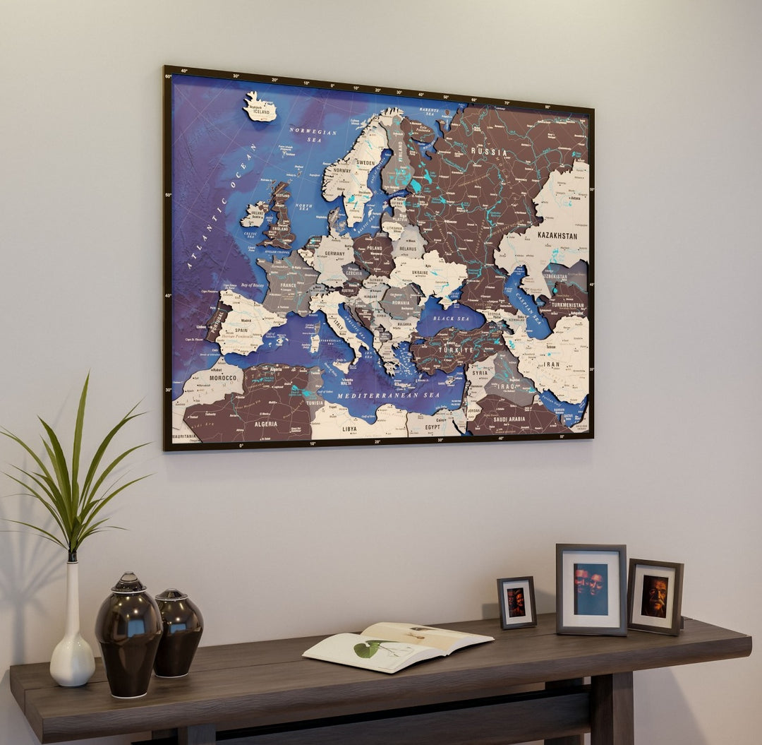 Farklı renk seçenekleriyle tasarlanmış, şık ve detaylı ülke haritalarıyla evinizin dekorasyonuna zarif bir dokunuş katın.