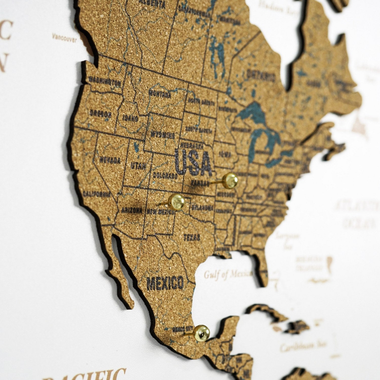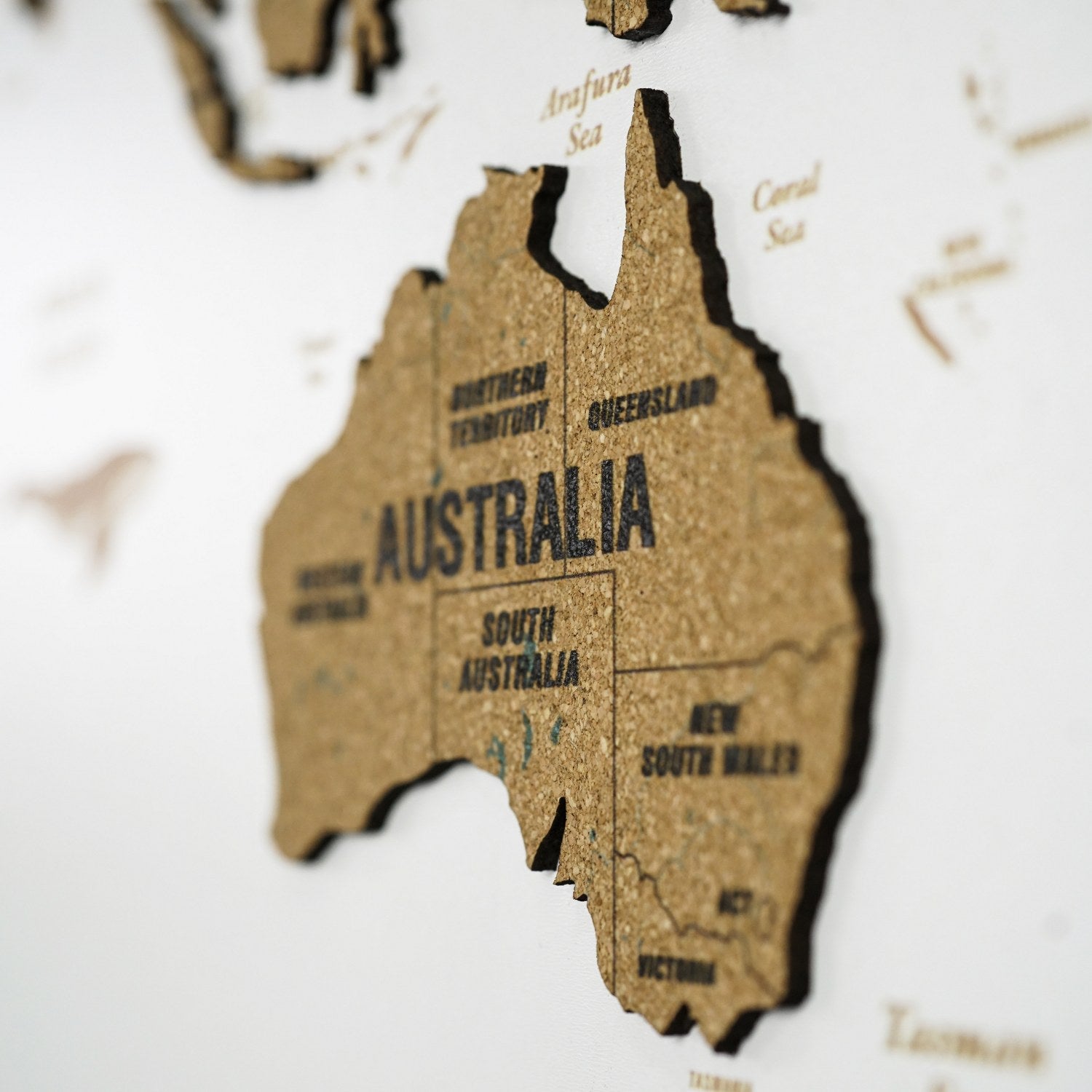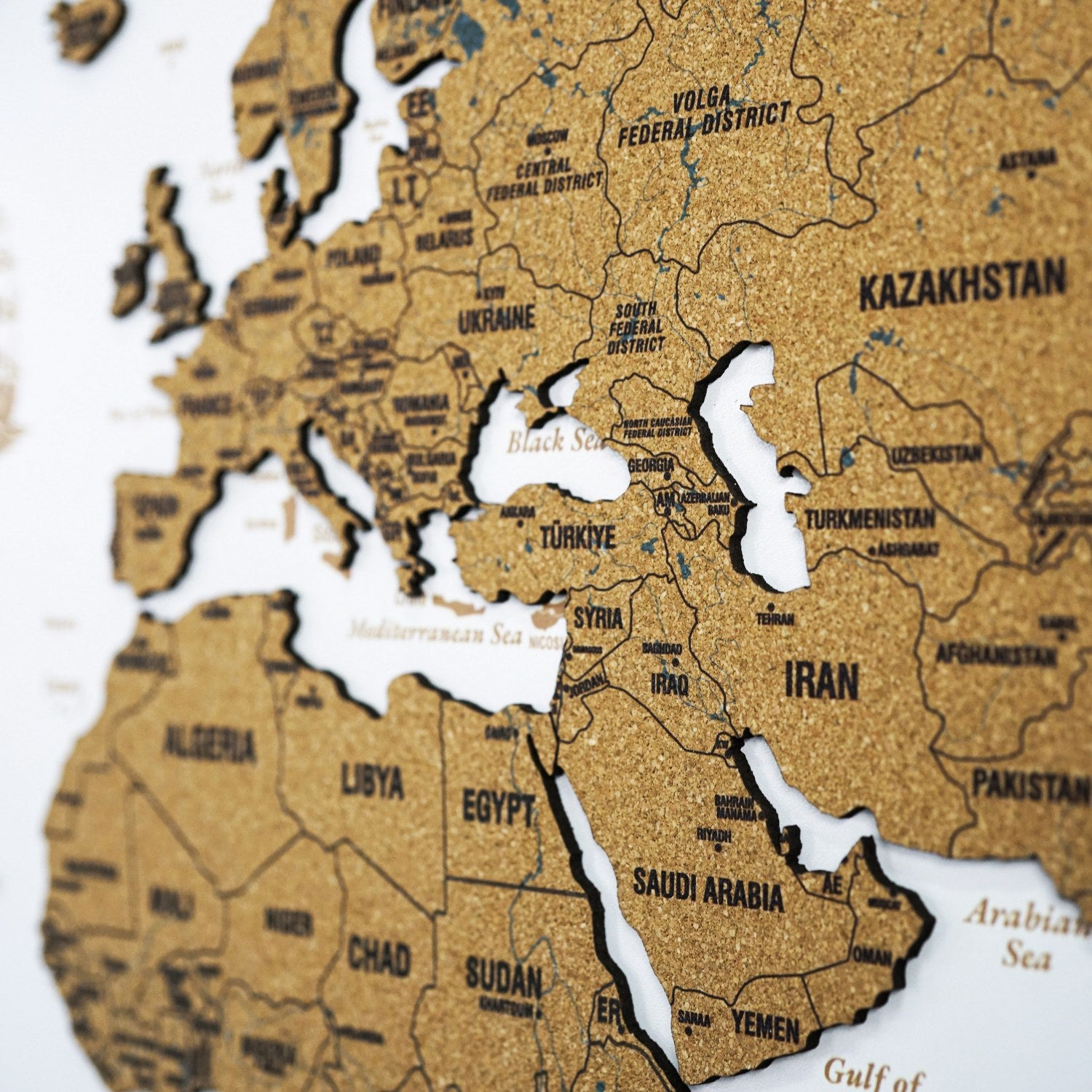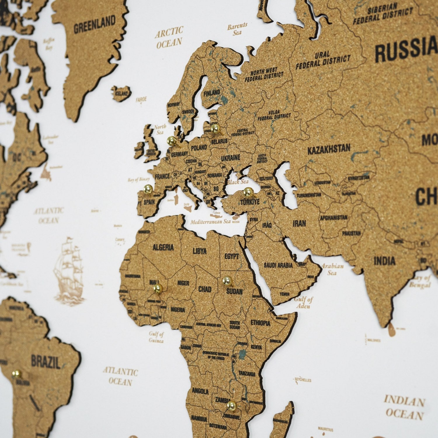 Mantar pano ahşap dünya haritası, şık ve modern tasarımıyla, evinize veya ofisinize benzersiz dokunuş katacak. Beyaz zemin üzerine yerleştirilen mantar dünya haritası, kaliteli UV baskısı ve özgün tasarımıyla dikkat çeker. Bu modern duvar haritası evinizde anlamlı ve estetik bir ahşap tablo setine sahip olmanızı sağlar.