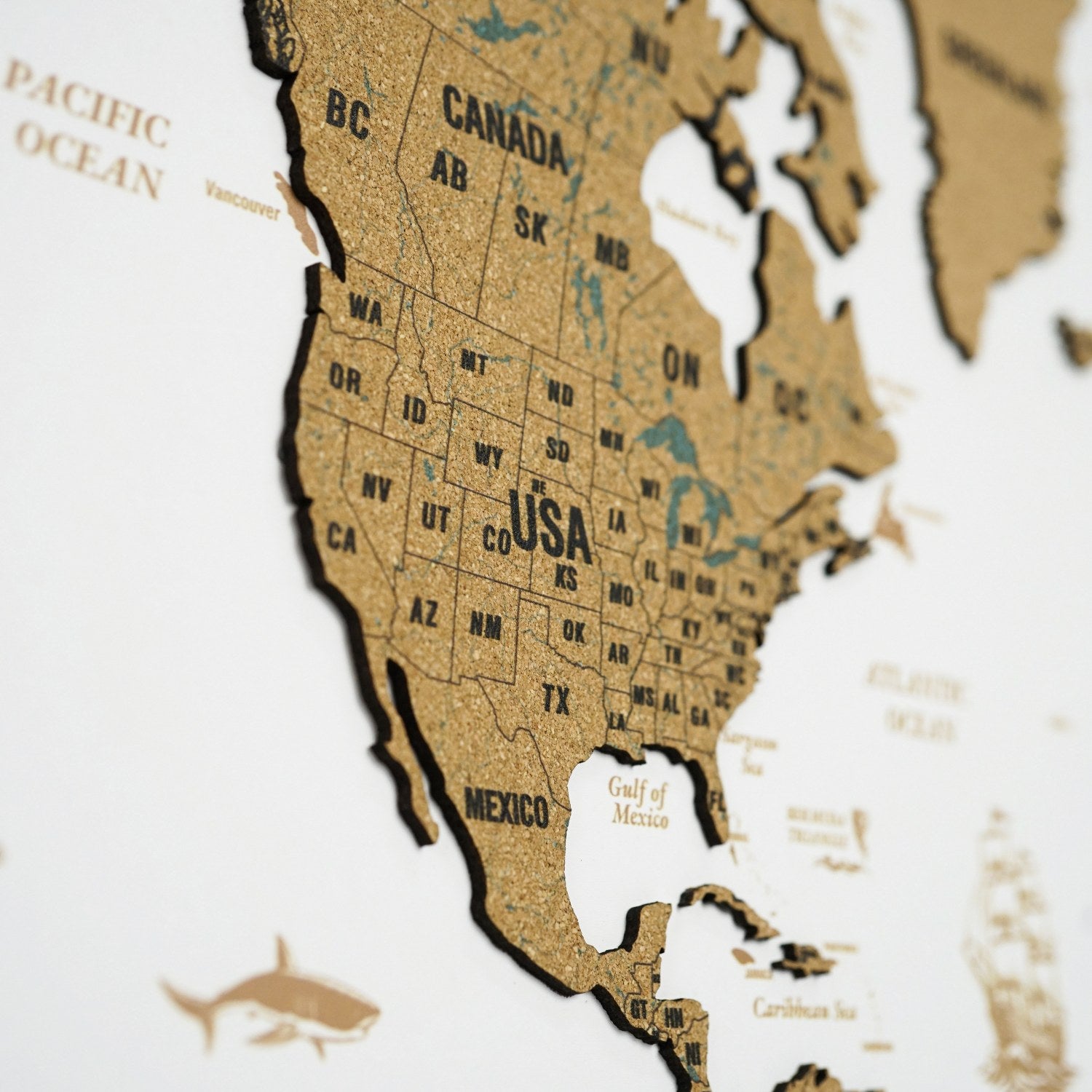 Çerçeveli mantar pano dünya haritası evinizi veya ofisinizi özgün bir şekilde dekore etmek için mükemmel bir seçenektir. Beyaz zemin üzerine yerleştirilen mantar dünya haritası, kaliteli UV baskısı ve estetik tasarımıyla dikkat çeker. Çerçeveli yapısı, anlamlı ve estetik bir ahşap tablo sahibi olmanızı sağlar.