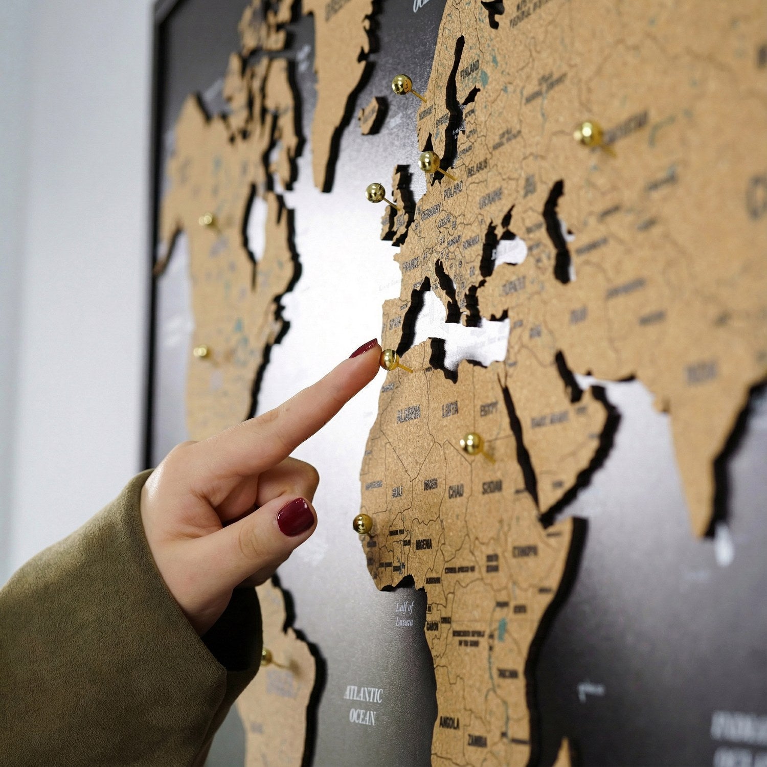 Çerçeveli mantar pano dünya haritası evinizi veya ofisinizi özgün bir şekilde dekore etmek için mükemmel bir seçenektir. Siyah zemin üzerine yerleştirilen mantar dünya haritası, kaliteli UV baskısı ve estetik tasarımıyla dikkat çeker. Çerçeveli yapısı, anlamlı ve estetik bir ahşap tablo sahibi olmanızı sağlar.
